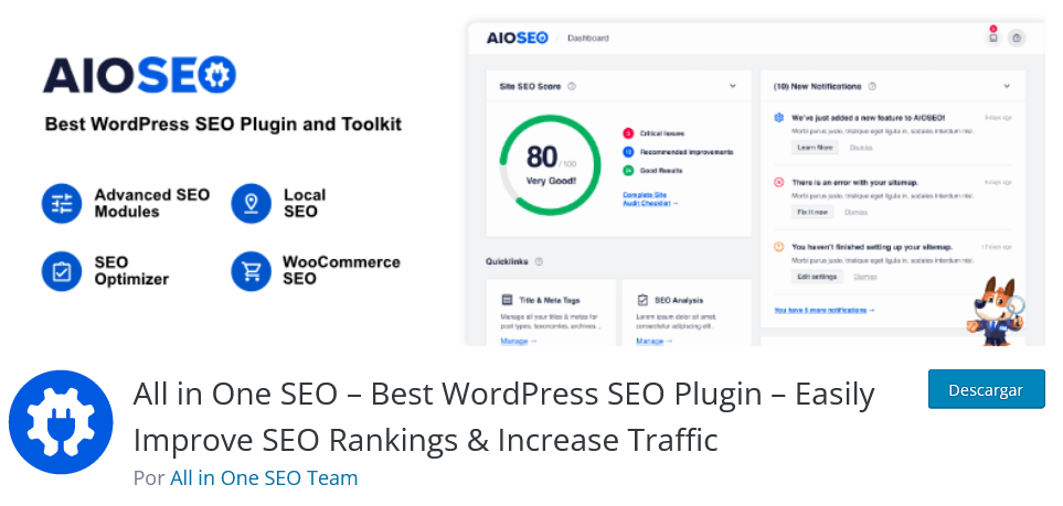 En primer lugar, tendrás que instalar y activar el plugin AIOSEO.
