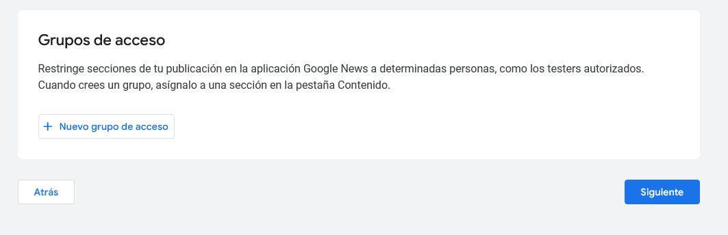 Además, también puedes restringir determinadas secciones de tu publicación en la aplicación Google Noticias para determinadas personas en la configuración de «Grupos de acceso».