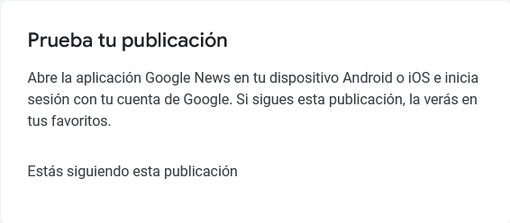 Antes de enviar tu publicación, puedes desplazarte hasta la sección «Probar tu publicación» y hacer clic en el botón «Seguir publicación». Esto hará que tu sitio aparezca en Favoritos en la aplicación Google Noticias.