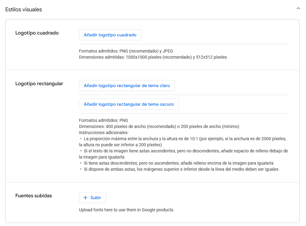Existe la opción de introducir un logotipo cuadrado y un logotipo rectangular. Además, también puedes subir fuentes personalizadas.