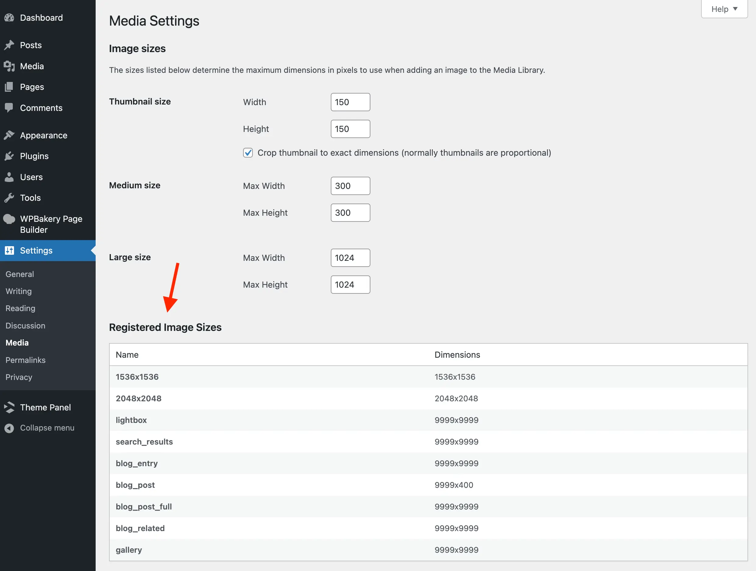 Configuración de los tamaños de imagen en WordPress