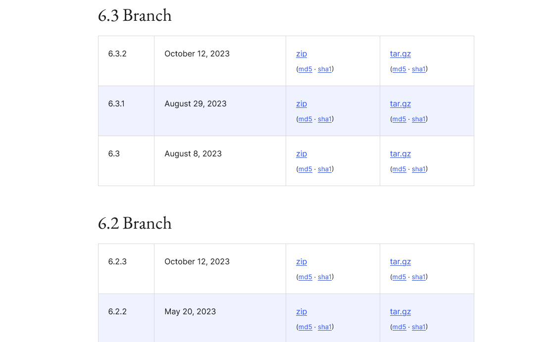 1. Antes de la actualización, descarga la versión de WordPress que habías instalado. La página oficial de WordPress.org contiene el listado completo de versiones anteriores. Como ejemplo: