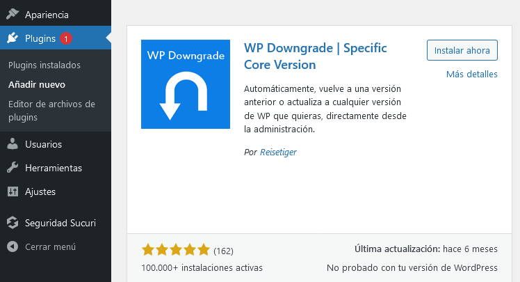Aviso: aunque este plugin es el más popular para volver a una versión anterior de WordPress, no ha sido testado en las tres actualizaciones más recientes de este CMS, por lo que no se recomienda su uso si está instalada la versión 5.6 o superior. Recuerda que siempre puedes realizar una prueba en otro entorno para probar su funcionamiento.