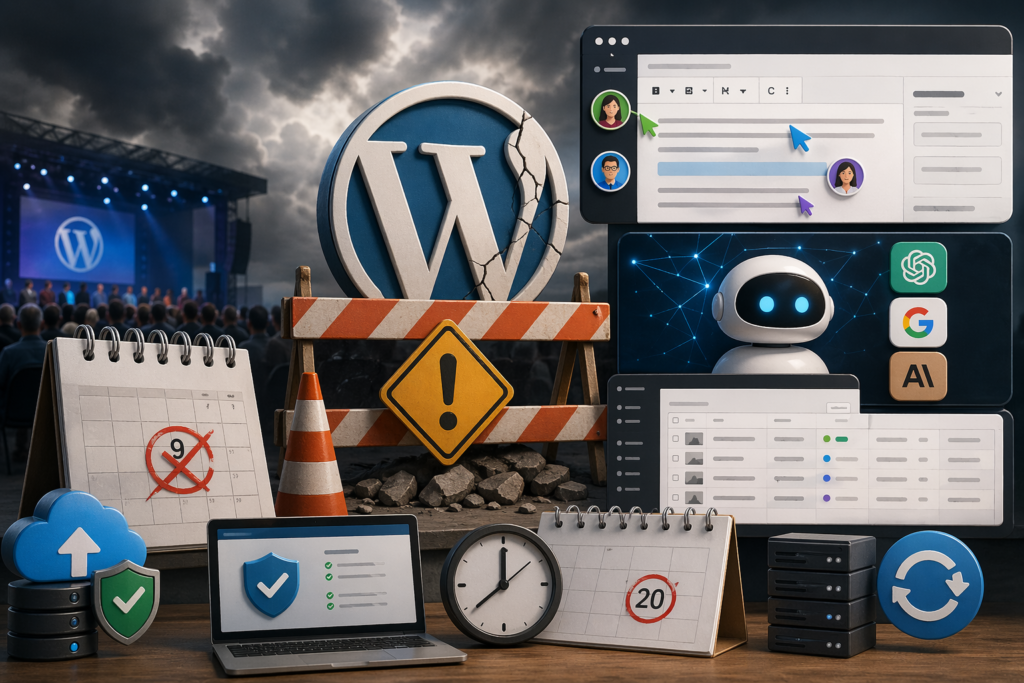 La edición colaborativa en tiempo real, la gran novedad de esta versión, presentó problemas de rendimiento durante las pruebas finales con proveedores de hosting. No era algo que se pudiera parchear rápido — requería un rediseño más profundo de la arquitectura. El equipo decidió no lanzar algo que pudiera afectar a millones de sitios.